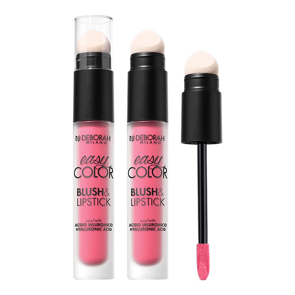Easy Color Blush&Lipstick, një kombinim dy-në-një që mund të përdoret në buzë dhe faqe. Formuluar me acid hialuronik dhe vaj organik të bajames së ëmbël për aplikim të qetë dhe pa mundim. Tekstura prej kadifeje jep një nuancë ngjyrash të përziera, të ndërtueshme dhe me përdorim të gjatë, që rrit me mjeshtëri buzët dhe faqet. Aplikuesi inovativ me qëllime të dyfishta ka një majë sfungjeri në njërin skaj për përzierjen e produktit mbi buzët dhe faqet, dhe një majë të grumbulluar në anën tjetër për konturimin e saktë të buzëve. I testuar nga dermatologu.