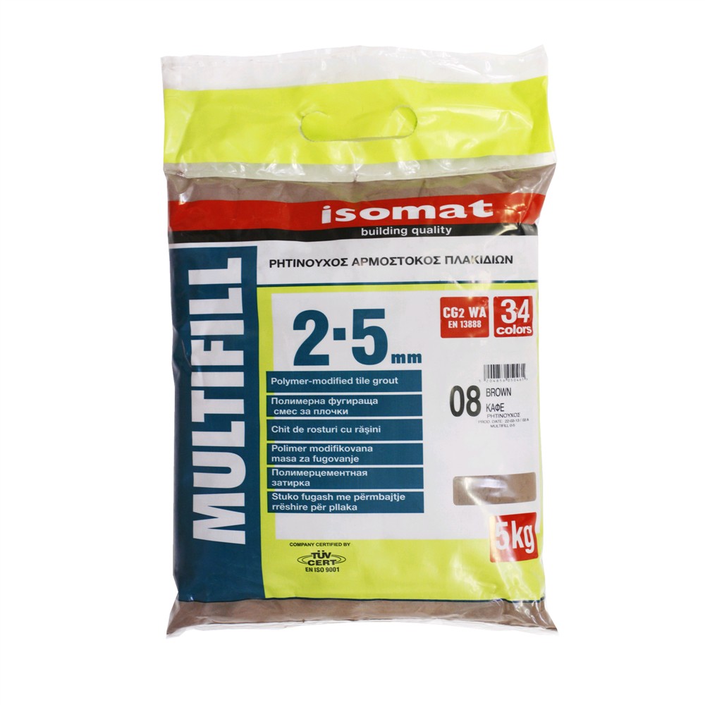 Multifill -Tile grout 2-5 është një stuko me ngjyrë me bazë çimentoje për pllakat. Ajo ofron fortësi mekanike dhe stabilitet të ngjyrës. E përshtatshme për fuga me gjerësi deri në 5 mm. Ajo klasifikohet si stuko për fuga pllakash e llojit CG2 sipas standardit EN 13888. Multifill -Tile grout 0-5 përdoret stukimin e fugave të pllakave në mure ose në dysheme, për përdorim në ambiente të jashtme dhe të brendshme.