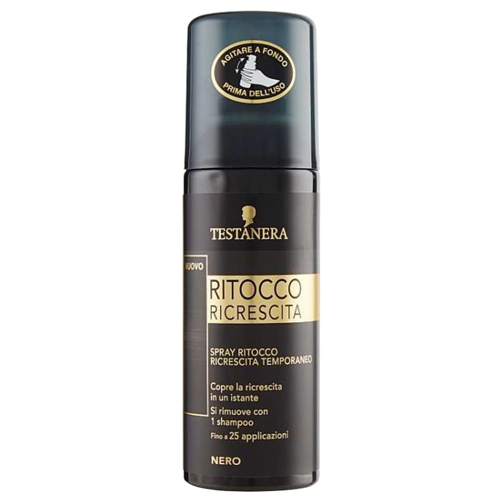 Bojë flokësh sprai e përkohshme, ne ngjyre te zeze 120 ml. Shërben për të mbuluar thinjat, për të mbushur hapësirat boshe ndërmjet flokëve, apo per ti dhene dhe nje ngjyre flokeve.