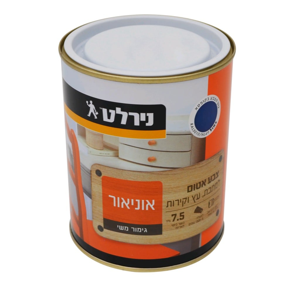 Bojë vaji (zmalti) universale 750 ml ngjyre blu. Perdoret per lyerjen e metalit, drurit dhe mureve, e pershtatshme per brenda dhe te jasht. Me shkelqim mat satin e bazuar ne nje perberes te vetem rreshire polirethane. Siguron mbrojtje dhe nje perfundim elegant. Nuk permban plumb dhe pajtohet me standartet e Institutit te Specifikimeve te Izraelit nr 32. E pershtatshme per te lyer metale, dru dhe mure pas pergatitjes se duhur. Perdorimi tipik: E bazuar ne nje perberes te vetem rreshire polirethane dhe rezistente ne kohe. Jazhtezakonisht rezistente ne kushte te ashpra atmosferike. Siguron mbrojtje ndaj lageshtires dhe ujit. E lehte ne perdorim dhe siguron nje shtrese lyerjeje pa cifla boje. Pergatitja e siperfaqes: Pastroni siperfaqen nga pluhuri dhe mbeturinat e tjera, hiqni ciflat e shtresave te lyrjeve, per te perfituar nje shtrese te re te forte dhe te paster. Lemojeni me nje leter zmeril, furce metali ose sperkates (sprucues) me rere. Aplikoni nje Prim te pershtatshem. Perdorimi: Tretesi Terpentine Tretes per pastrimin e veglave Terpentine. Sasia e tretjes (ne volum) deri ne: Furce: 5 %. Rul: 5 %. Sperkates i zakonshem: 15 %. Presioni i ajrit: 3-4. Te dhenat materiale: Nuanca e ngjyrimit: Nuancat RAL ne perputhje me katalogun Nirlat Millenium Niveli i shkelqimit: Satin DFT mikrone: 50. Mbulimi teoritik 10 (m²/L). Kohezgjatja e tharjes deri per tu prekur: 1 ore Kohezgjatja e tharjes deri ne rilyerje: 24 ore. % e trupave solide (ne peshe): 75%. Mbulimi praktik varet nga kushtet e siperfaqes qe lyhet, ashpersia e siperfaqes, kushtet atmosferike, mjetet e punes etj. Mos e perdorni materialin kur temperatura eshte nen 7 grade C ose kur parashikohet mot me shi.
