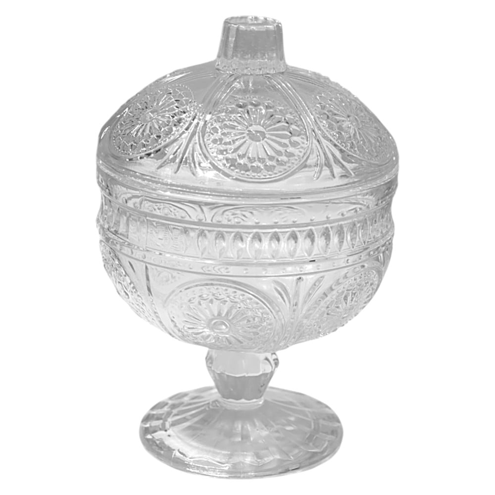 Bonboniera prej qelqi transparente me diametër 9.7 cm dhe lartësi 14.8 cm është një zgjedhje elegante për ruajtjen dhe servirjen e ëmbëlsirave të vogla, çokollatave apo bonboneve. Dizajni i saj i thjeshtë dhe transparent e bën të përshtatshme për çdo dekor tavoline, duke shtuar një ndjesi fine dhe moderne. E bërë nga qelq cilësor, bonboniera është e qëndrueshme, e lehtë për t’u pastruar dhe mund të përdoret në mënyrë të përshtatshme në raste të ndryshme festive ose për përdorim të përditshëm në shtëpi.