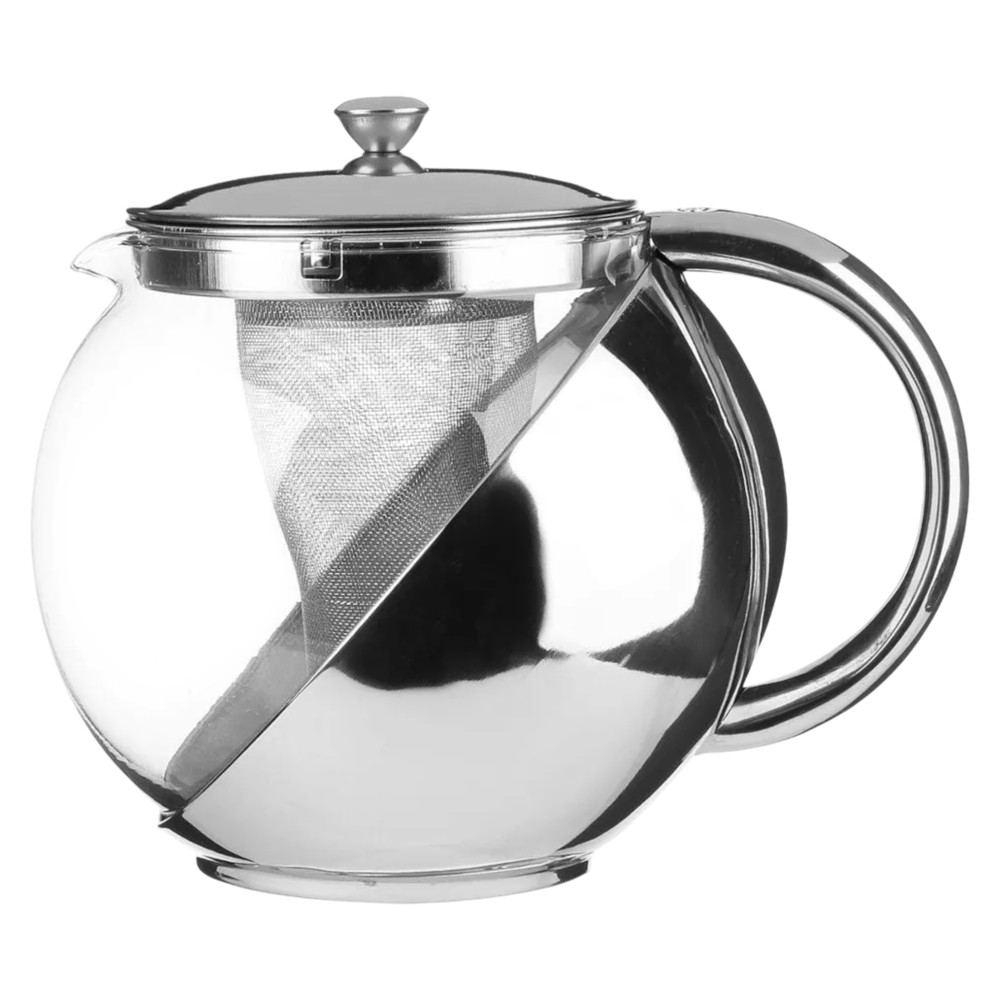 Shijoni ritualin e përgatitjes së çajit me këtë çajnik elegant dhe praktik. I dizajnuar për funksionalitet dhe stil, ky çajnik është zgjedhja ideale për çdo dashamirës të çajit. Kombinimi i qelqit transparent me elementet e inoksit me ngjyrë argjendi i jep një pamje moderne dhe të pastër, duke e bërë një aksesor të bukur në kuzhinën tuaj. Çajniku ka një sitë të lëvizshme prej inoksi, e cila është perfekte për të përgatitur çaj me gjethe të lirshme. Kjo ju lejon të shijoni çajin pa mbeturina dhe ta hiqni sitën lehtësisht sapo çaji të ketë arritur fortësinë e dëshiruar. I bërë nga qelq rezistent ndaj nxehtësisë dhe inoks i pandryshkshëm, ky çajnik është i qëndrueshëm, i sigurt për përdorim dhe i lehtë për t'u pastruar.