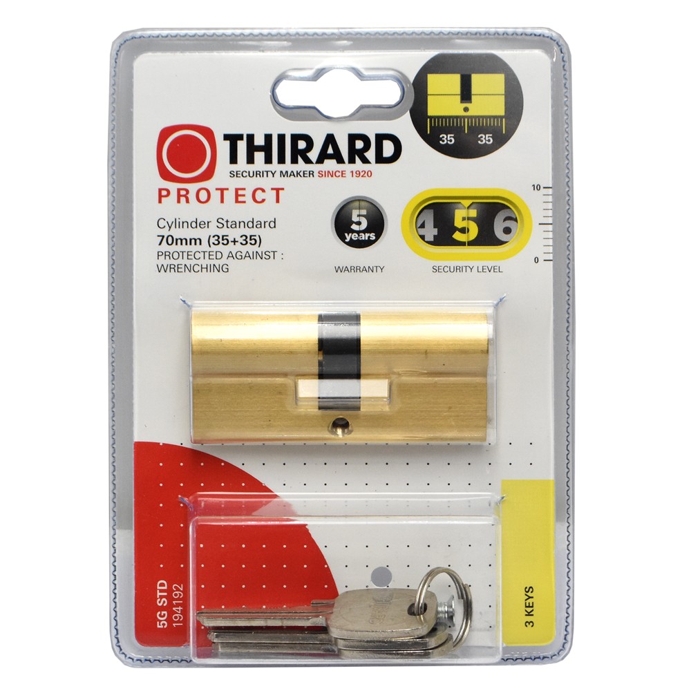 Cylinder 35x35 mm, with mechanism of 5 pins for protection against puncture. With hardened steel pins and has 3 keys, a personal security card for duplicate keys.