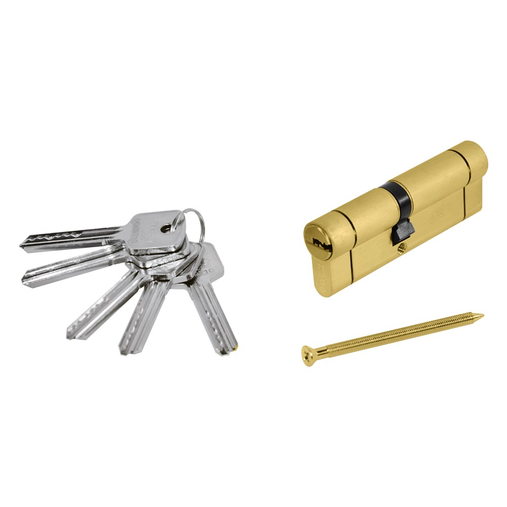 Cilinder per dyer te blinduara, me 5 celesa ,materiali bronz permasat 80mm. Ky cilinder perdoret kryesisht per dyert e jashtme ne saje te sigurise qe jep ky produkt dhe cilesise se larte ne materialin e perdorur. I prodhuar ne disa ndarje te segmentuara per ta bere te pa thyeshem si dhe te pa depertueshem me trapan .