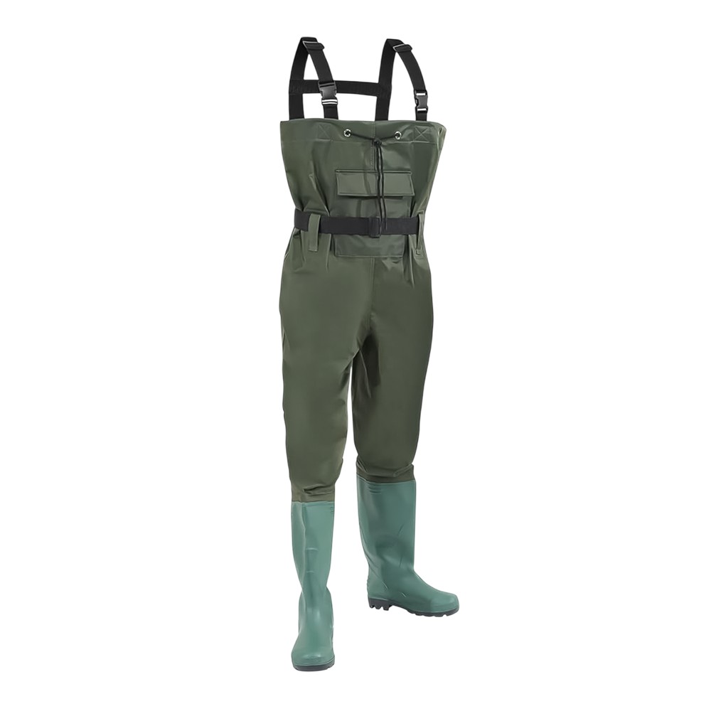 Çizme të gjata të papërshkueshme nga uji për peshkim, të prodhuara nga materiali rezistent PVC. Dizajni i integruar përfshin çizme të bashkangjitura me pantallona të gjata, që sigurojnë mbrojtje të plotë deri në bel ndaj ujit dhe lagështirës. Materiali PVC siguron qëndrueshmëri dhe është rezistent ndaj konsumit.Janë ideale për peshkim, aktivitete në ujë, apo punë në kushte me lagështi.Të disponueshme në masën 44.