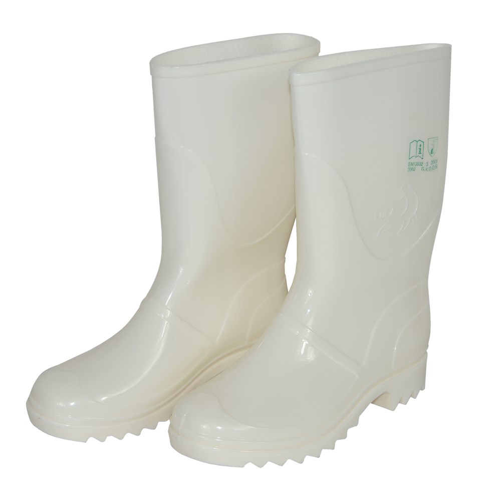 Çizme plastike, të bardha për industrinë ushqimore. Materiali PVC dhe Nr.43. Prodhuar nga një material shumë cilësor dhe i virgjër prej PVC- je. Këto çizme mund të përdoren në vende me vajra, yndyrëra apo tretësira të tjera duke ju mbrojtur nga rrëshqitjet apo dëmtimet e mundshme në ambientet tuaja të punës.