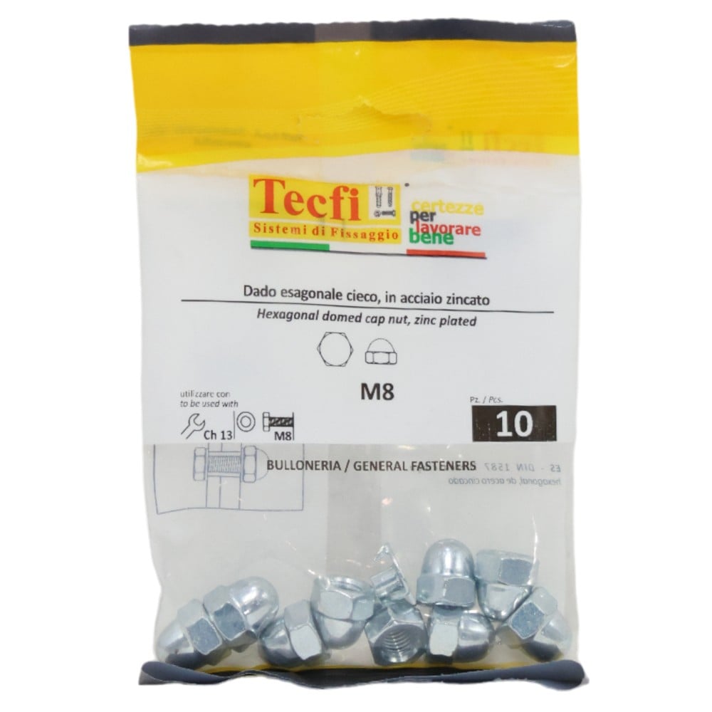Dado hegzagonale DIN1587 me kapuç, M8mm , Bag 10