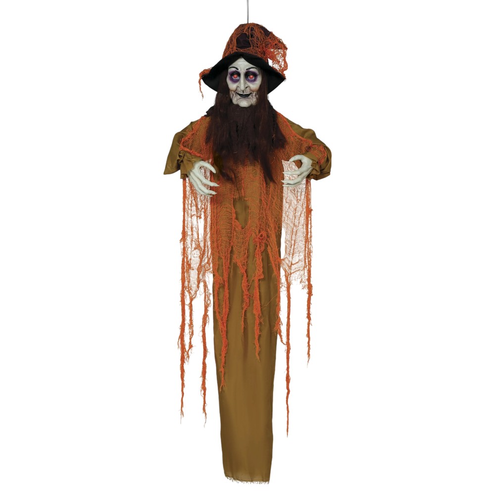 Ky dekorues Halloween i dizajnuar si një shtrigë është një aksesor fantastik për festën tuaj. Me një gjatësi prej 180 cm, ai vjen me drita, zë dhe lëvizje, duke krijuar një atmosferë të frikshme dhe argëtuese. I përshtatshëm për t’u varur në dyer, mure ose tavane, ky dekorim do të tërheqë vëmendjen e të gjithëve dhe do t'i japë një prekje magjike ambientit tuaj. Një zgjedhje ideale për të bërë çdo festë Halloween të paharrueshme.
