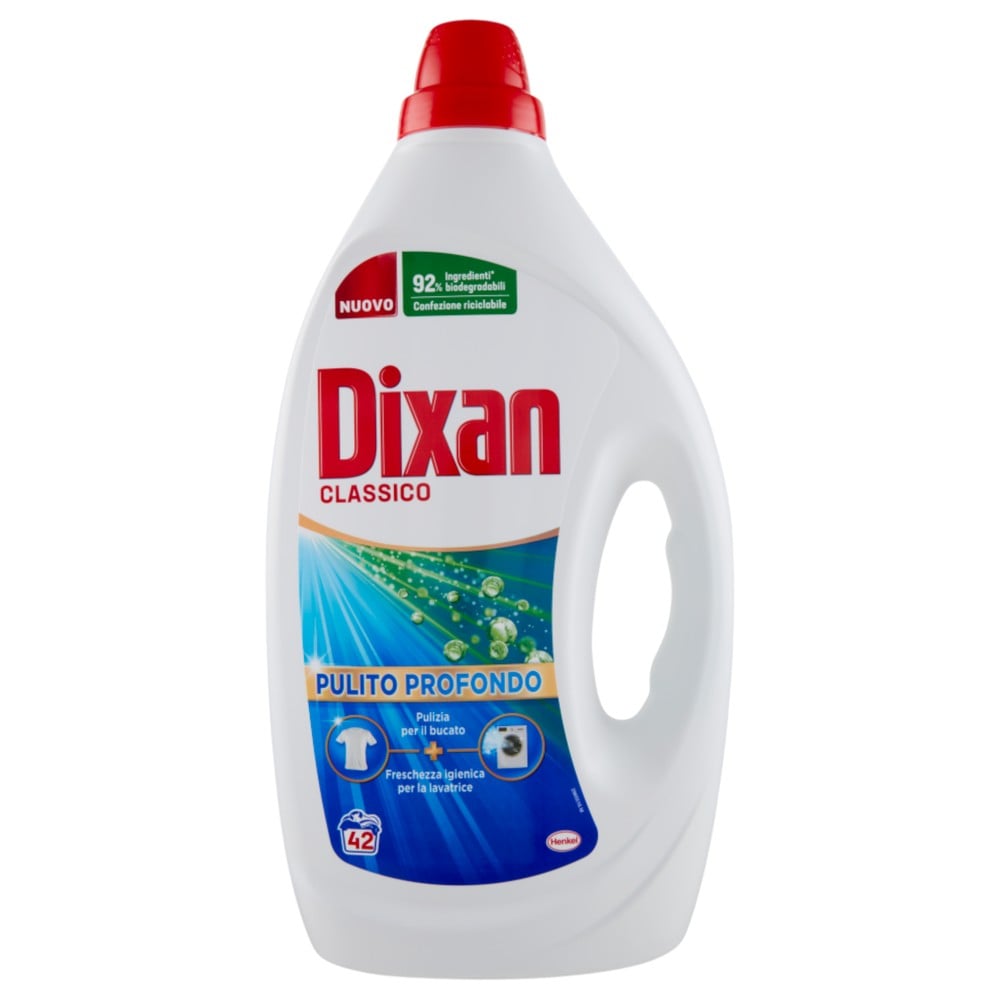 Dixan Classico Detergjent Likuid është formulë e fuqishme dhe efektive për pastrimin e thellë të rrobave të bardha dhe me ngjyra. Dizajnuar për të hequr njollat më të vështira dhe për të rikthyer shkëlqimin dhe freskinë e rrobave, ky detergent likuid garanton rezultate të shkëlqyera në çdo larje. Formulë e përshtatshme për larje në të gjitha temperaturat. Freski dhe aromë klasike e këndshme.