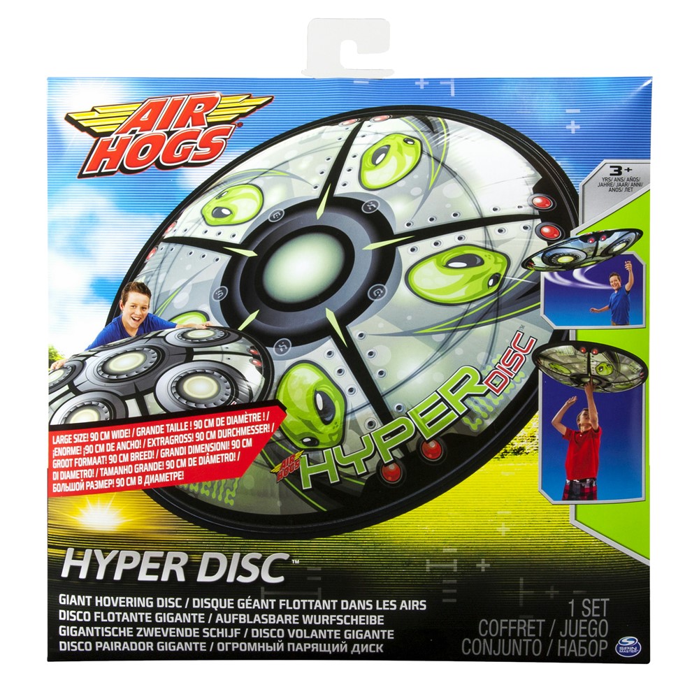 Disk fluturues Air Hogs, i cili mund të mbushet me ajër ose helium dhe është i përshtatshëm për të luajtur në ambiente të jashtme. Ndihmon në zhvillimin e reflekseve dhe aftësive të koordinimit tek fëmijët. Ky produkt është i përshtatshëm për fëmijë mbi 3 vjeç.