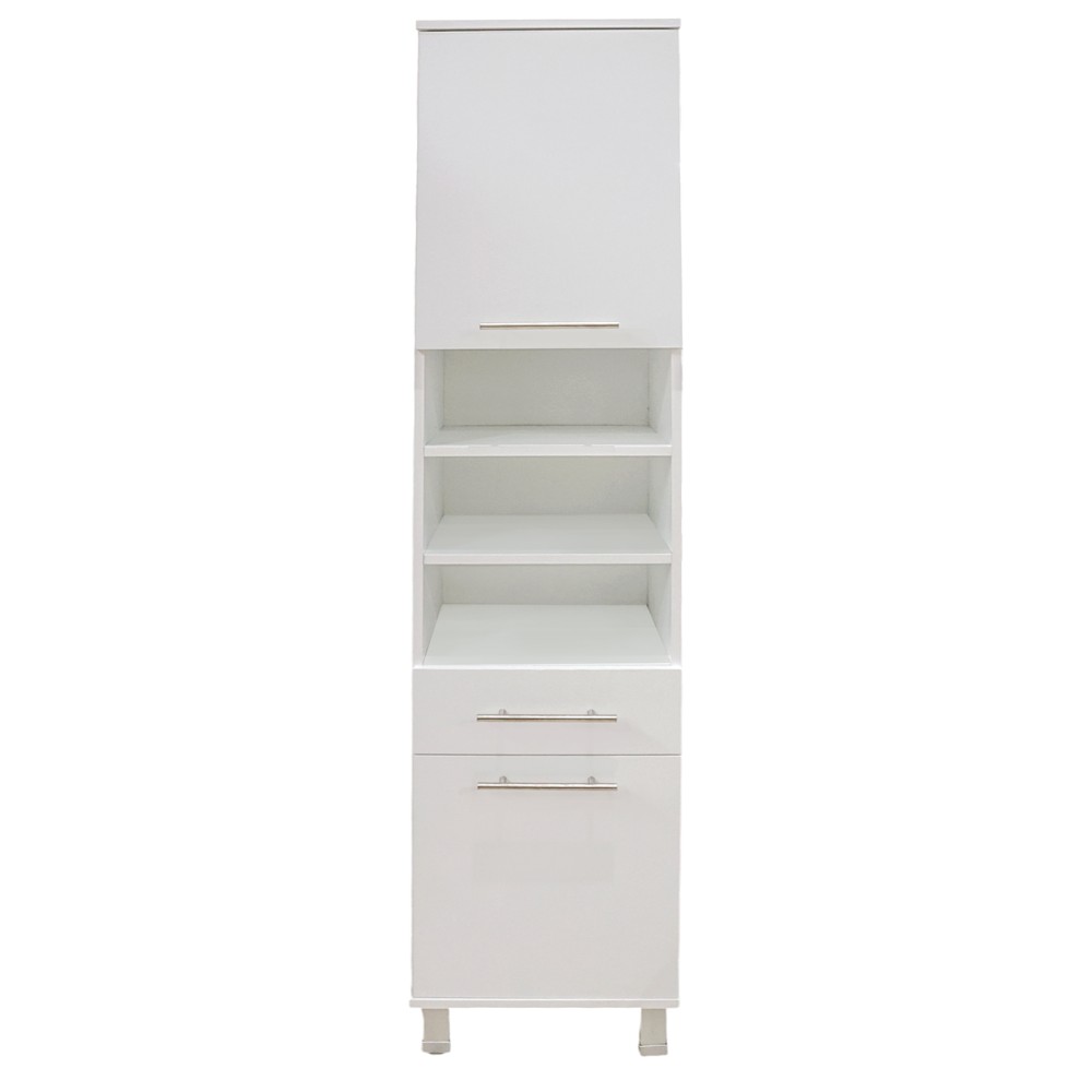 Rrëmuja ka pushtuar tualetin tuaj dhe nuk dini si ta sistemoni? Ky problem zgjidhet me dollapin anësor "Orman Nora" i cili është ideal për magazinimin e sendeve personale. Prodhuar me melamine të cilësisë së lartë me spesor 16 mm dhe në ngjyrë të bardhë kjo mobilje do përstatet lehtësisht me arredimin e tualetit tuaj. I pajisur me 2 kanate, 1 sirtar dhe 3 segjenë për akses të shpejtë. Përmasat, lartësia : 180 cm, gjerësia : 40 cm, thellësia : 35 cm.