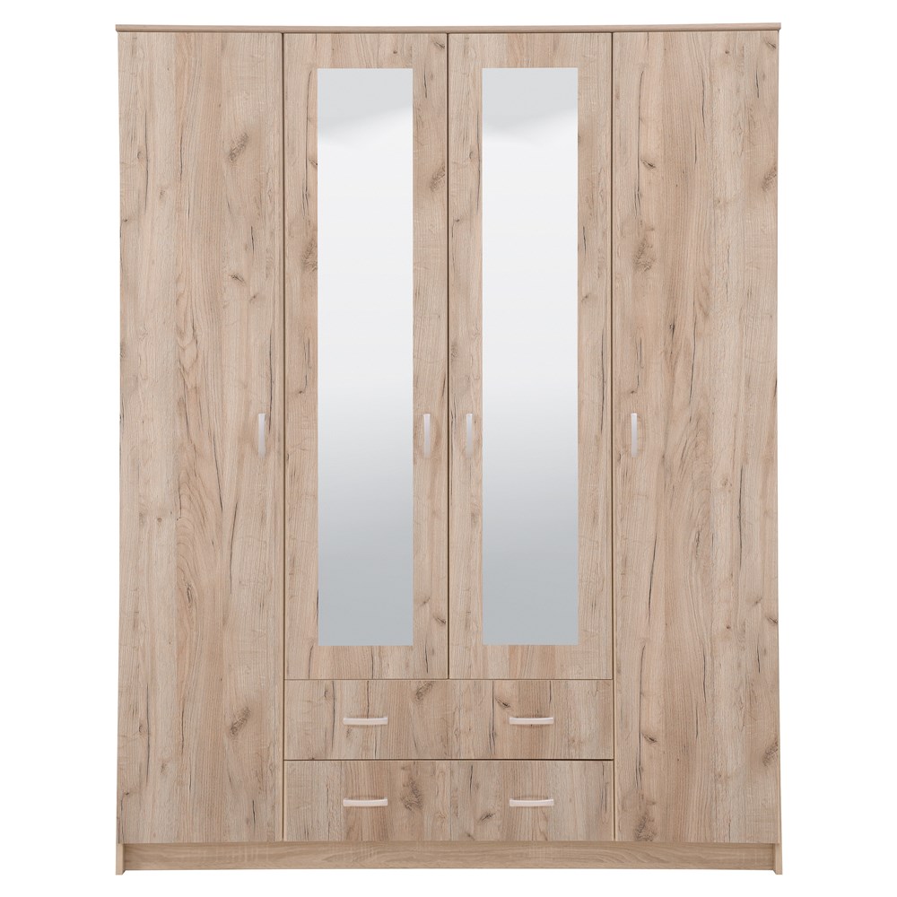 Modeli elegant i dollapit HANA 4K2FO me 4 kanata, tre ose katër rafte dhe dy sirtarë, do të kontribuojë në organizimin funksional të ambientit. Pasqyra në pjesën e mesme të veshjes HANA 4K2FO do të pasurojë hapësirën e jetesës në mënyrë estetike.