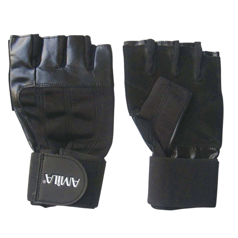 Doreza palestre, Amila, lëkurë, masa M, ngjyra e zezë, me fasho te kyçet