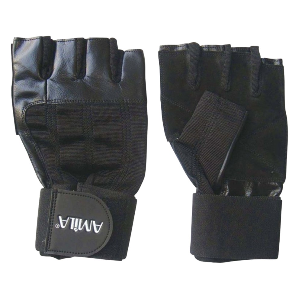 Doreza palestre, Amila, lëkurë, masa S, ngjyra e zezë, me fasho te kyçet