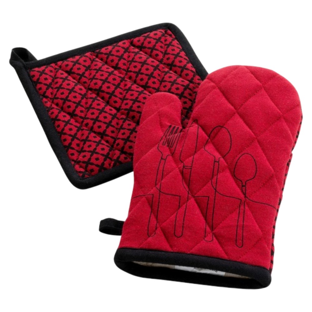 Po vlerësoni:Dorezë dhe mbajtëse kuzhine, e kuqe, 18x28 cm/20x20 cm, pambuk