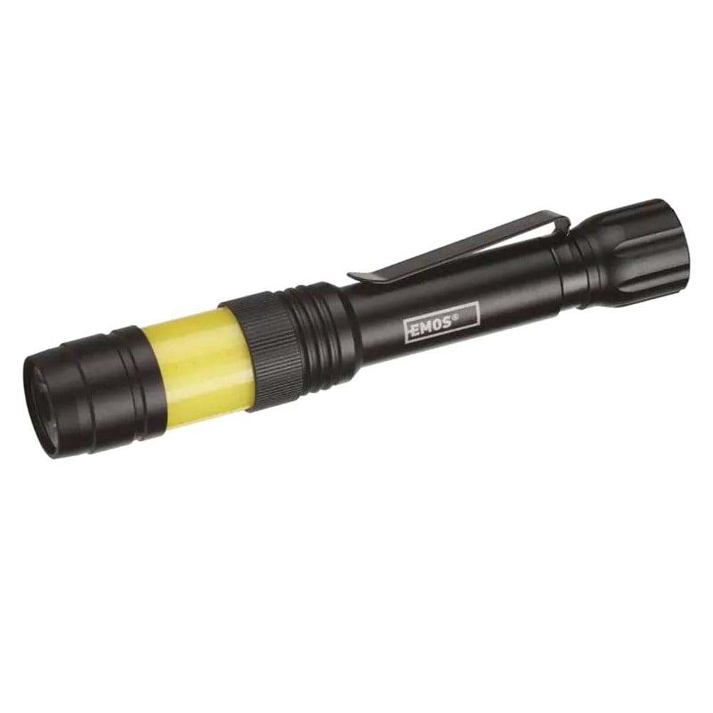 Ky është një elektrik dore i dobishëm LED nga EMOS, i cili do të jetë i përsosur për ndriçimin e ambjenteve në errësirë. Është i përbërë nga alumini i cilësisë së lartë. Elektrik dore ka dy burime drite LED dhe një COB LED me një fluks të lartë ndriçimi. Produkti punon me 2 bateri AA.