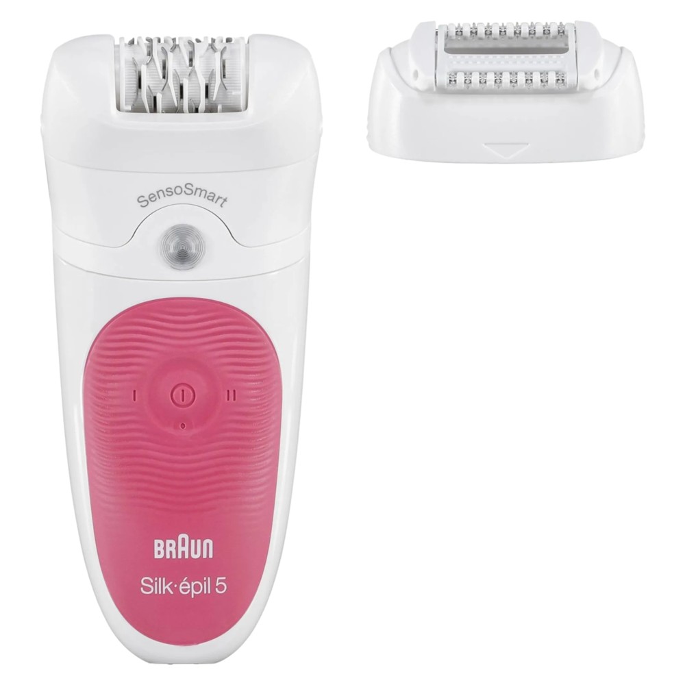 Seti i epilimit Wet & Dry Braun Silk-épil 5 heq qimet e shkurtra që depilimi nuk mund të kapet, për lëkurë të lëmuar afatgjatë deri në 4 javë. Ideale për përdoruesit e rinj, teknologjia inovative SensoSmart drejton epilimin tuaj në mënyrë që të përdorni presionin e duhur, duke hequr edhe më shumë qime me një përdorim. Epilatori pa kabllo dhe 100% i papërshkueshëm nga uji, mund të përdoret në banjë ose dush për heqjen e butë të qimeve. Me 2 shtesa; duke përfshirë rula masazhi dhe kapak kontakti me lëkurën.