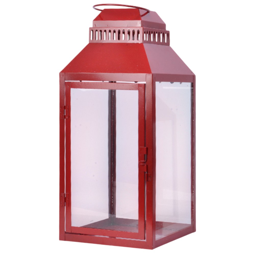 Fener dekorativ, L, metalike, e kuqe, 20x20xH45cm