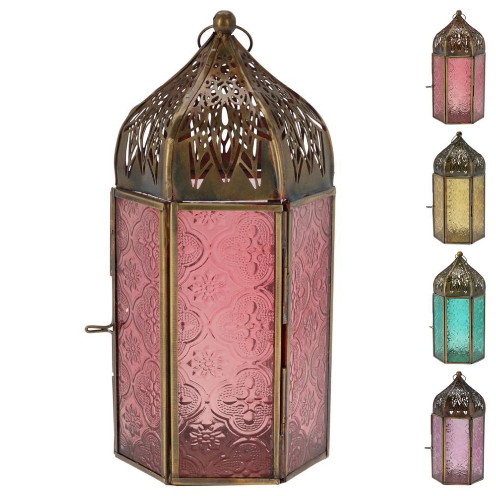Fener dekorativ, metal, qelq, të ndrryshme, H20 x L10 x W9 cm
