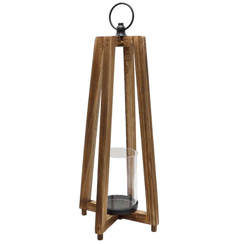 Fener dekorues, metal/dru/xham, kafe, 17xH48 cm