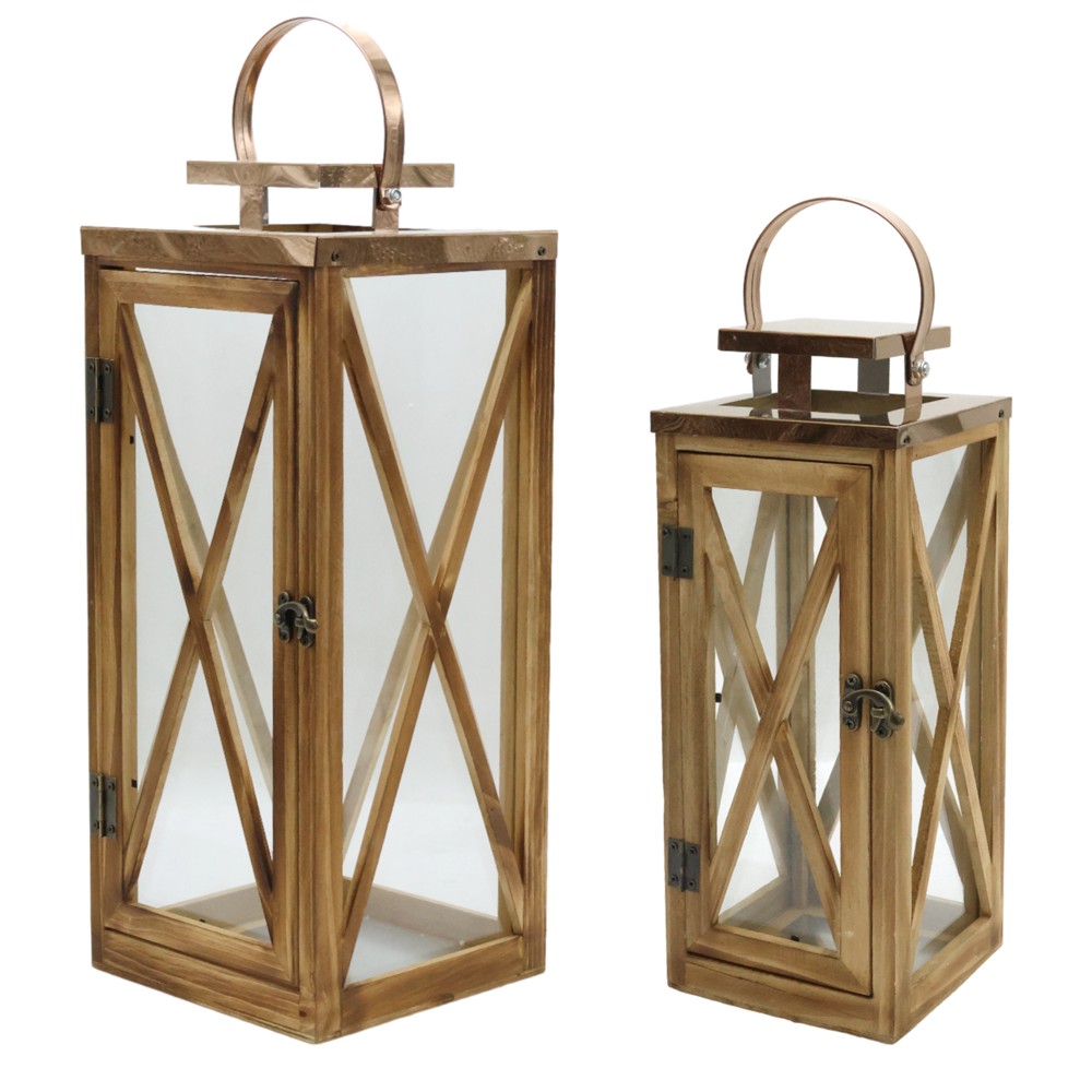 Fenerët dekorues janë një zgjedhje e shkëlqyer për të shtuar një prekje të bukur dhe një atmosferë të ngrohtë në ambientin tuaj. Ky set përfshin dy fenerë në dimensione të ndryshme për të përmbushur preferencat tuaja për dizajnin e brendshëm. Pjesa e jashtme e fenerëve është e krijuar nga metal, duke i dhënë atyre një strukturë të qëndrueshme , ndërsa pjesa e brendshme është e bërë nga xhami, e cila ndihmon në shpërndarjen e dritës në mënyrë të butë dhe të bukur në ambient. Ngjyra e tyre kafe jep një ndjesi të ngrohtë dhe të mrekullueshme.