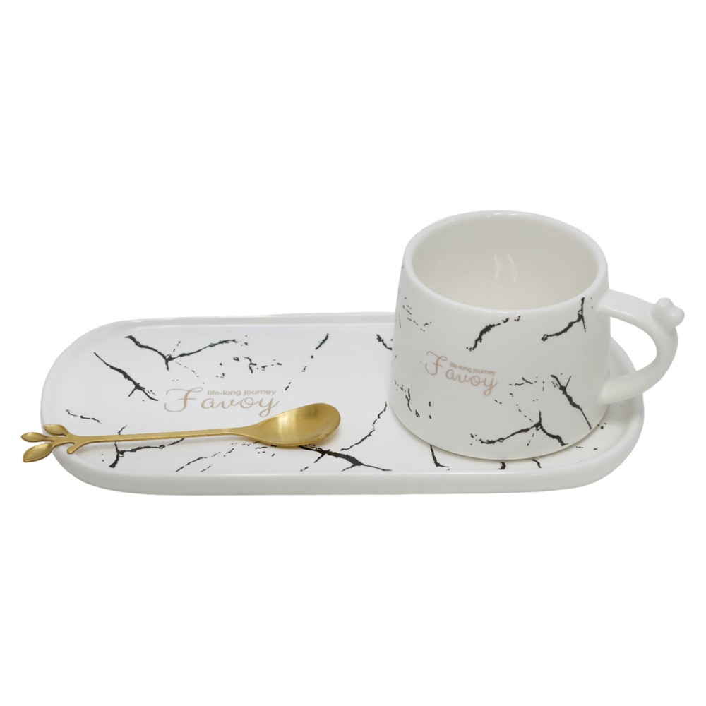 Filxhan çaji me pjatë servirje, qeramikë, e bardhë, 7.5xH6 / 23.5x11 cm