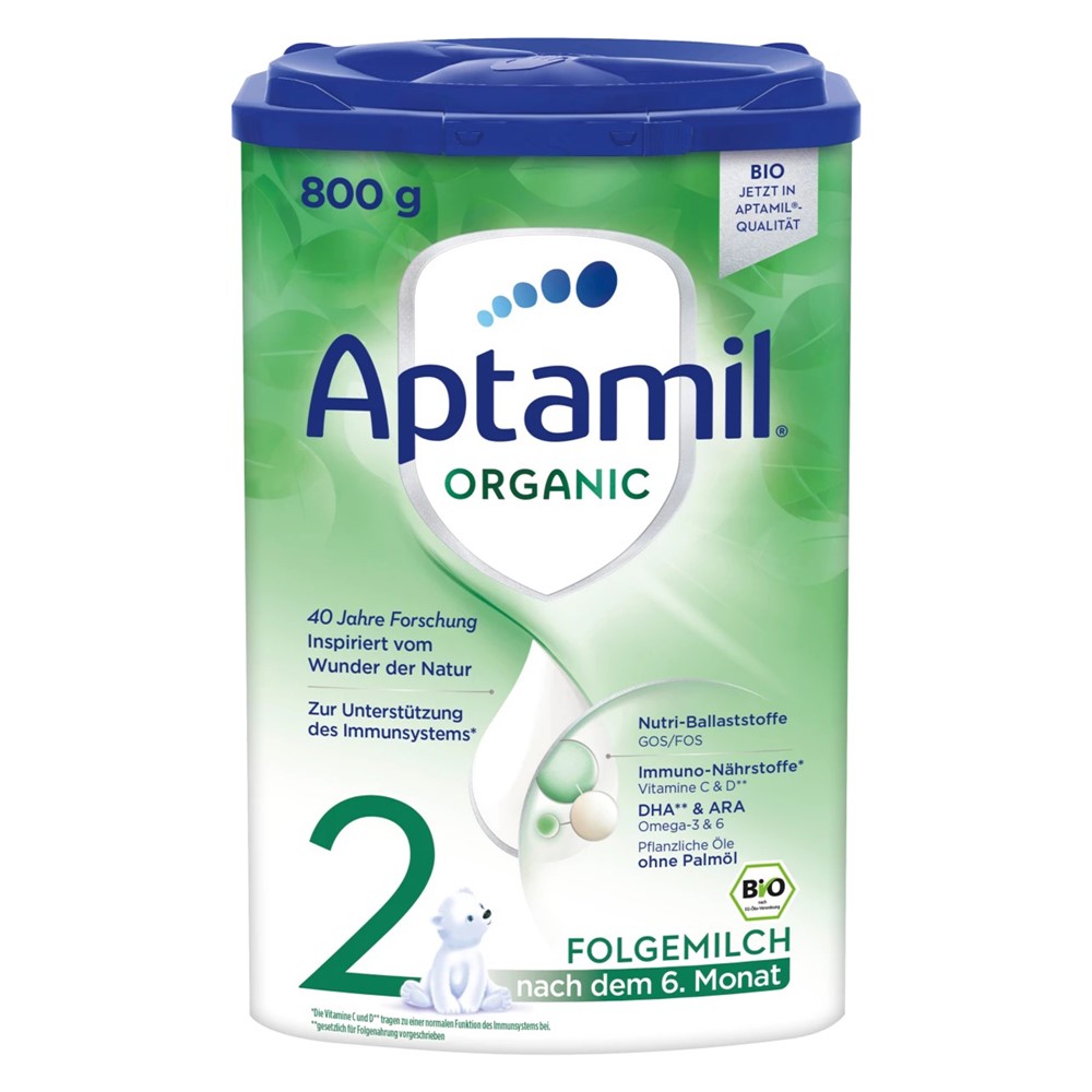 Qumësht organik nga Aptamil 1, zëvendësues i qumështit të gjirit me përbërës organikë. Qumështi vjen në përputhje me standardet organike dhe nga burim i sigurtë me cilësi të lartë. Me vitamina A, C & D dhe përbërës organikë të çertifikuar. I përshtatshëm nga muaji i 6-të dhe për të plotësuar një dietë te shëndetshme të foshnjës suaj.Lani duart dhe zieni 1 litër ujë të freskët. Lëreni të ftohet për 30 minuta dhe matni sasinë e kërkuar të ujit në një shishe të sterilizuar. Shtoni masën e saktë të produktit në ujë. Shtimi i shumë ose shumë pak produkti mund të jetë i dëmshëm. Tundeni vertikalisht për të paktën 10 sekonda, derisa të tretet. Kontrolloni temperaturën e ushqimit.