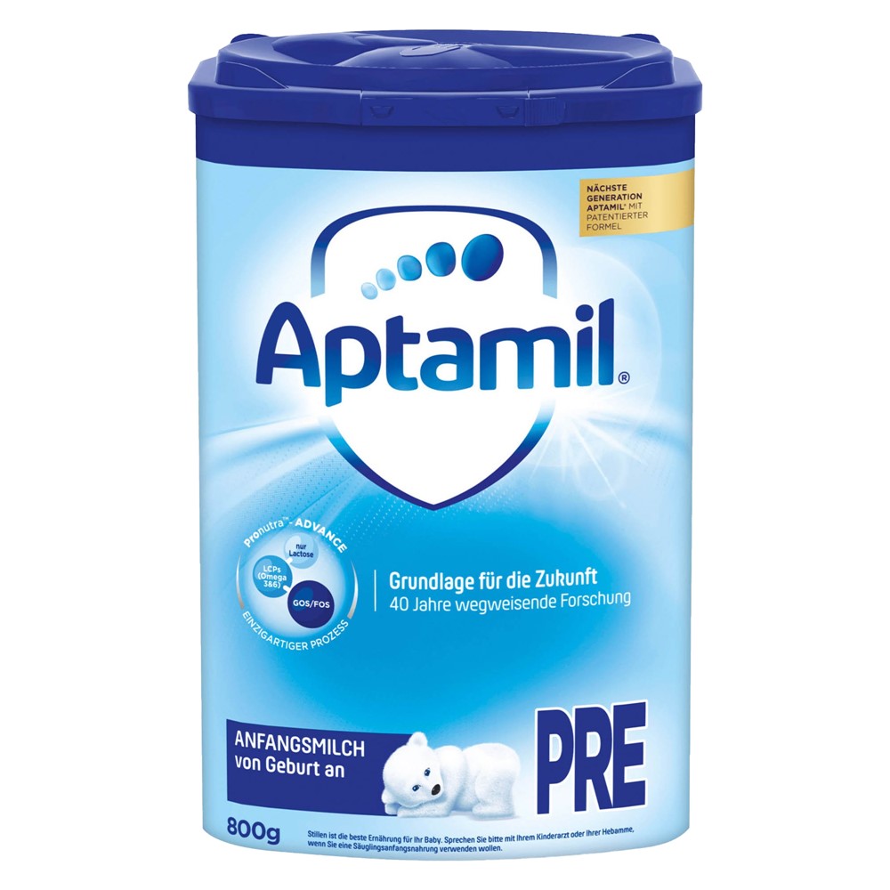Formulë qumështi për bebe, me një përmbajtje të pasuruar me acide yndyrore LCP Milupan® (zinxhir i gjatë acidesh yndyrore shumëfishe të pangopura), përzierje fibrash GOS/FOS të patentuar dhe laktozë nga qumështi. Mund të përdoret si një ushqim i kompletuar apo si një shtesë ushqimore gjatë ushqyerjes me gji. Ndihmon në zhvillimin e sistemit imunitar tek bebet, stimulon zhvillimin e trurit dhe pasuron organizmin me acide yndyrore që nuk mund të prodhohen vetë nga organizmi i bebeve. Mënyra e përdorimit: 1. Lani duart dhe sterilizoni të gjitha mjetet. 2. Zieni ujin, lëreni të ftohet deri në 40° C dhe matni sasinë e ujit që duhet (sipas udhëzimit) në shishen e sterilizuar. 3. Përdorni vetem lugën dozuese brenda kutisë. Për të matur në mënyrë të saktë sasinë e pluhurit, sheshoni sasinë e tij me një thikë të pastër. 4. Shtoni sasinë e duhur të pluhurit në shishe sipas udhëzimeve. 5. Mbylleni shishen dhe tundeni fort, vertikalisht për 10 sekonda. Lëvizja rrotulluese nuk mjafton. 6. Ftoheni përgatitjen në ujë të rrjedhshëm. Kontrolloni temperaturën e qumështit tek kyçi i dorës (temperatura e rekomanduar është rreth 37° C). Ky produkt është i përshtatshëm për përdorim nga fëmijë të moshës 0 deri në 6 muajsh, në stadet e hershme të zhvillimit të tyre. Pas kësaj periudhe rekomandohet të kalohet gradualisht nga Aptamil Pre tek formulat e tjera Aptamil.