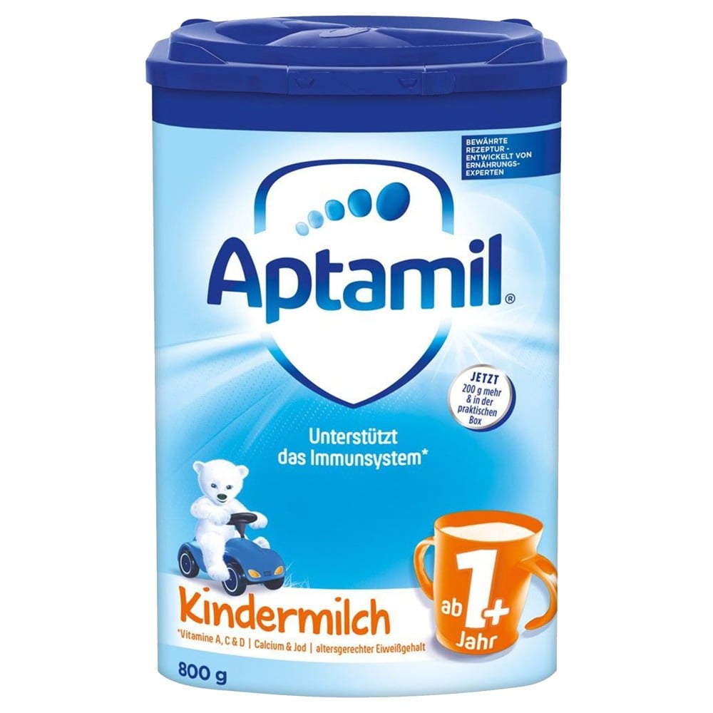 Formulë qumështi për fëmijë, me një përmbajtje të pasuruar me vitaminë A, vitaminë C, vitaminë D dhe jod, e cila përdoret për t'u ofruar fëmijëve vlerat ushqyese të duhura, sipas nevojave të grupmoshave të caktuara, duke siguruar një dietë të balancuar dhe të larmishme. Vitaminat A, C dhe D forcojnë sistemin imunitar, duke rritur rezistencën e organizmit ndaj sëmundjeve të ndryshme. Jodi është i rëndësishëm për rritjen dhe zhvillimin normal të gjëndrës tiroide. Vitamina D dhe kalciumi kontribuojnë në rritjen normale dhe zhvillimin e kockave të fëmijës. Mënyra e përdorimit: 1. Zieni ujin për 10 minuta dhe lëreni të ftohet deri në 40°C. 2. Shtoni sasinë e duhur të pluhurit në një gotë me ujë, duke përdorur lugën matëse që gjendet në kuti. 3. Përziejeni mirë dhe kontrolloni temperaturën (temperatura e rekomanduar është rreth 37° C). Ky produkt është i përshtatshëm për fëmijë të moshës mbi 1 vjeç. Për fëmijët e moshës mbi 2 vjeç rekomandohet të zëvendësohet gradualisht Aptamil Children's Milk 1+ me Aptamil Children's Milk 2+ (kodi 901626, 907141).