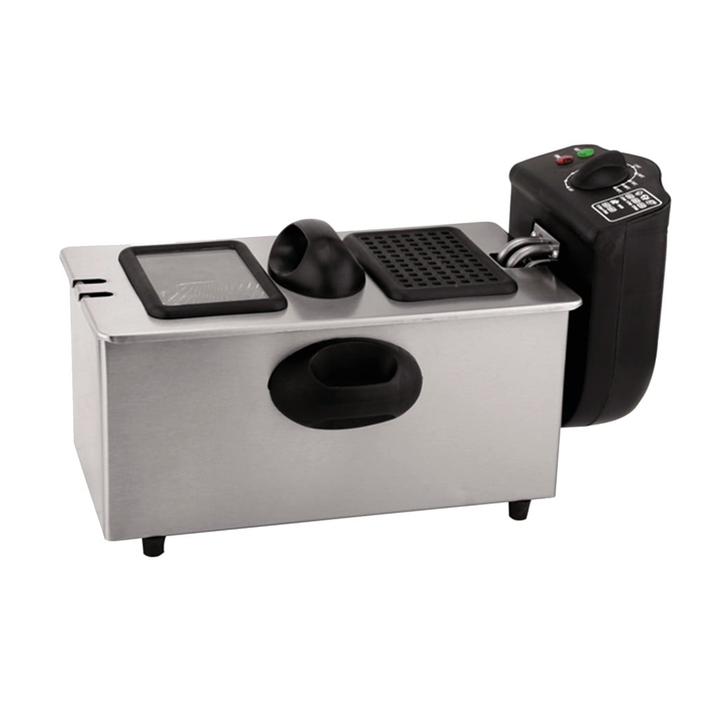 Fritezë e thellë me një kapacitet 3 Lt është ideale për përgatitjen e ushqime të skuqura ose aditivë për një numër njerëzish. Ju mund të skuqni patatet tuaja, unazat e qepëve, perimet ose mishin lehtësisht në shtëpi: pajisja është e pajisur me një filtër në kapak dhe një buton për ndezjen. Ju nuk do ta digjni ushqimin falë termostatit të rregjistrueshëm. Pajisja është gjithashtu e lehtë për t'u pastruar pasi është e pajisur me një enë vaji të lëvizshme.