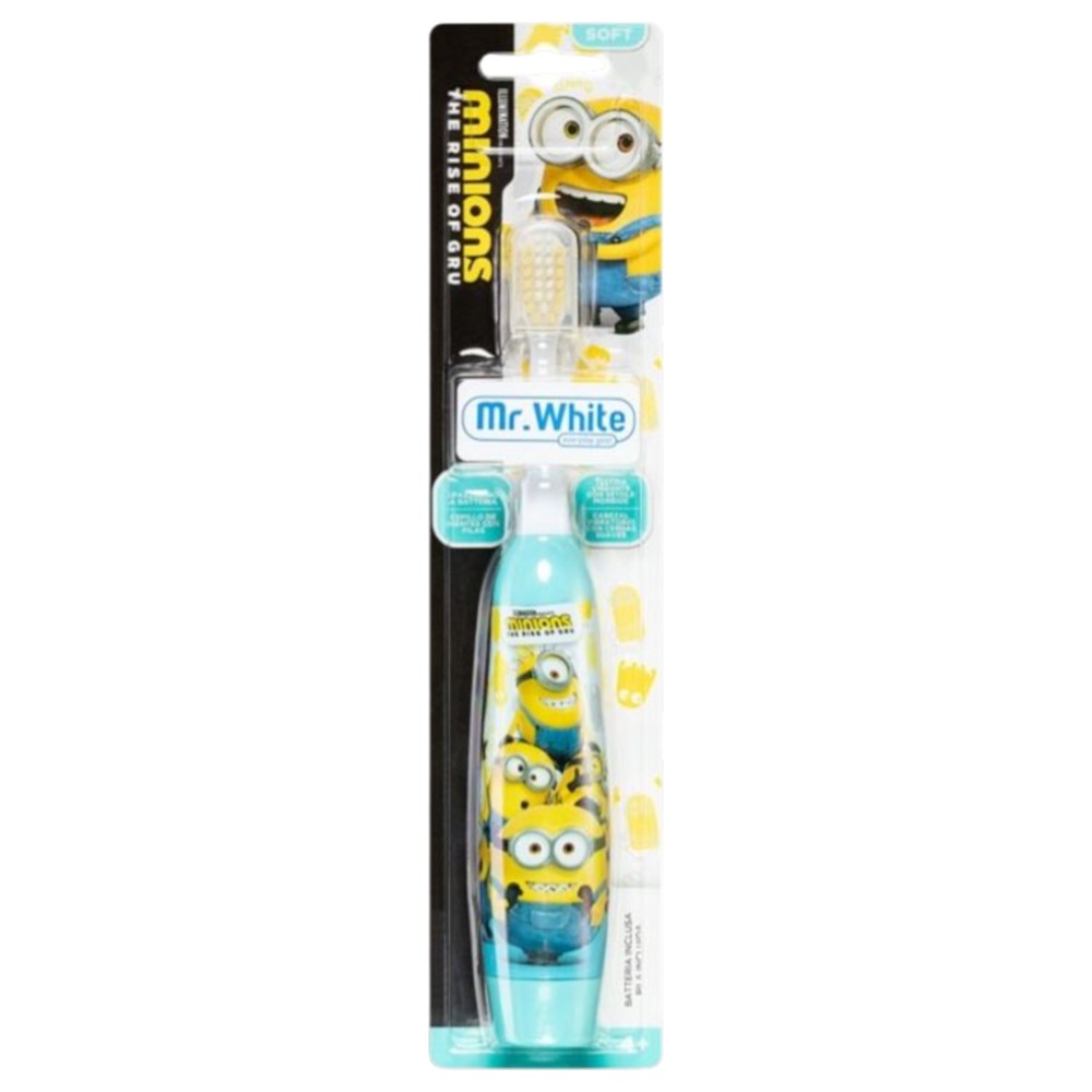 Kjo furçë dhëmbësh elektrike Minions është krijuar posaçërisht për fëmijët mbi 4 vjeç, duke kombinuar funksionalitetin me dizajnin e preferuar të tyre. Me ngjyrë të verdhë dhe ilustrimin e personazhit Minions, ajo e bën larjen e dhëmbëve një aktivitet të këndshëm dhe argëtues çdo ditë. Funksionon me një bateri AA 1.5V të zëvendësueshme (të përfshirë).