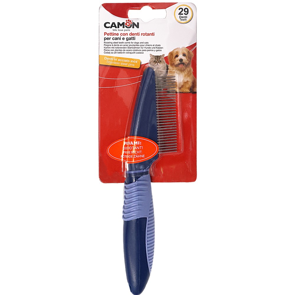 Kreh të dobishëm dhe të lehtë për t’u përdorur. Dhëmbët janë prej çeliku dhe rrotullohen mbi veten e tyre për të rritur efikasitetin e krehës dhe për të mos irrituar lëkurën e kafshës. Ato përmbajnë një gome ergonomike dhe dorezë plastike për kontroll të sigurt të mjetit. E rehatshme për pronarin e qenit, i shkëlqyeshëm për Groomer profesionist. Ata heqin parazitët dhe papastërtitë lehtë, shpejt dhe në mënyrë efektive.