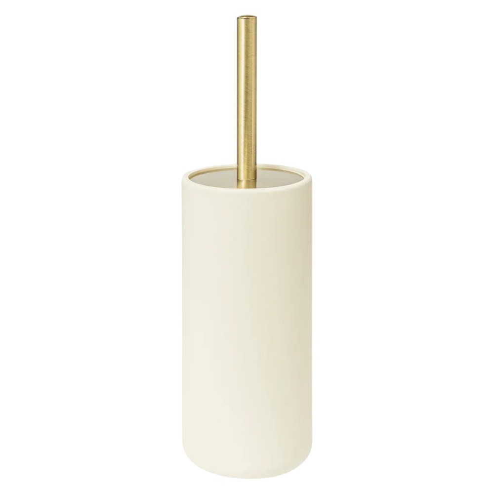 Furça e tualetit "Ivoire Duo" prodhuar nga 5FIVE vjen me një dizajn minimalist dhe modern. Mbajtësja e furçes është ideuar në material polirezinë që e bën tepër rezistente ndaj goditjeve, gjithashtu materiali i bishtit është inoks. Ngjyra bezhë monokrome ne finiturë mat e kombinuar me bishtin ngjyrë floriri jep një pamje sa të thjeshtë po ashtu edhe të sofistikuar. Përmasat, lartësia : H 35.7 cm x diametri : Ø 10.1 cm. Plotësoni setin e aksesorëve për tualetin tuaj me linjën "Ivoire Duo".