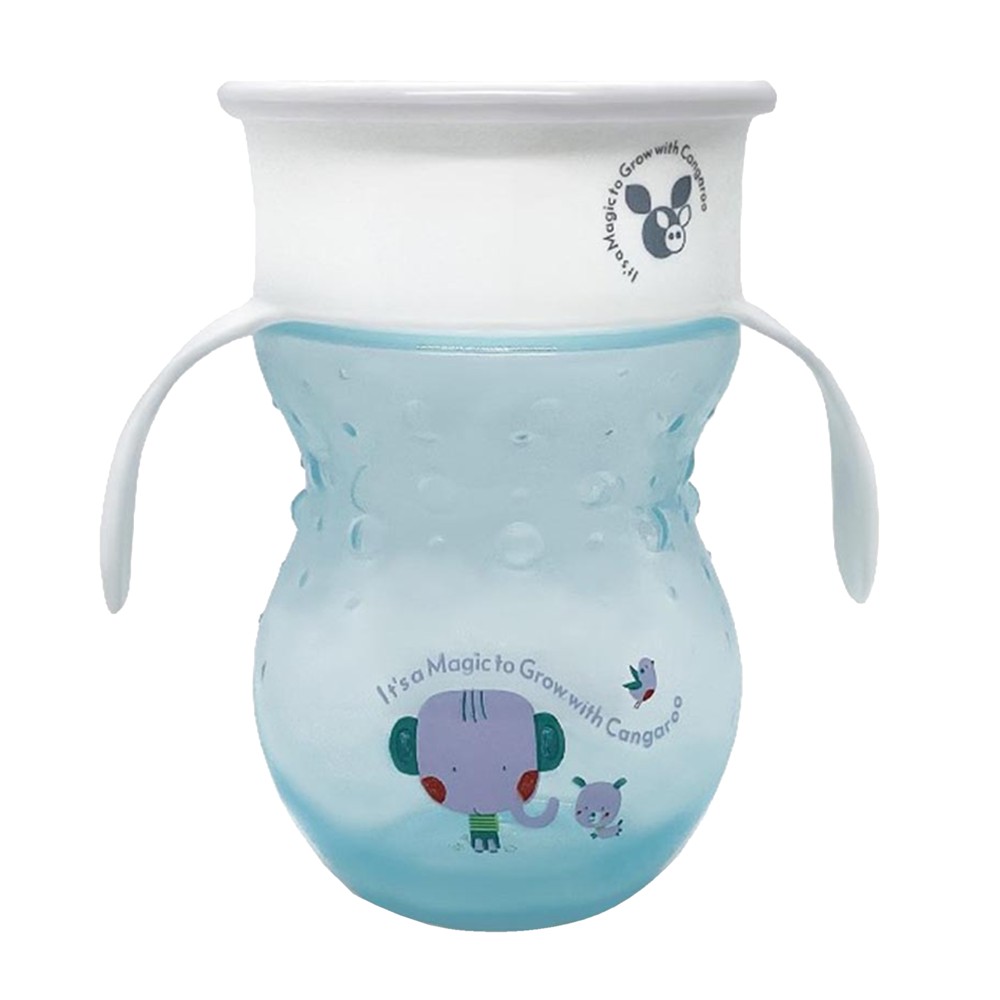Gotë për fëmijë, në ngjyrë blu, me kapacitet 270 ml. Kjo gotë magjike edukuese për fëmijë ndihmon që ato të konsumojnë ujë dhe lëngje frutash në përditshmërinë e tyre, dhe jo vetëm qumësht. Gota është e pajisur me një bazë silikoni 360°, e cila mbyllet menjëherë pasi fëmija ndalon së piri duke parandaluar rrjedhjen. Gjithashtu silikoni i butë mbron dhëmbët nga dëmtimet e mundshme. Ajo ka dy doreza për mbajtje më të lehtë, dhe një mbulesë plastike që mbron zonën e pirjes nga papastërtitë. Rekomandohet të përdoret nga fëmijë mbi 6 muajsh.