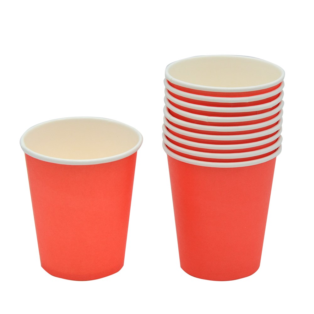 Gota të kuqe njëpërdorimshe, me kapacitet prej 220 ml, prej materiali kartoni, në ngjyrë të kuqe. Përdoren në evente të ndryshme si festa, ditëlindje etj. për të servirur pijet, duke shmangur rrëmujën dhe enët e papastra. Materiali është higjienik dhe i certifikuar për sigurinë ndaj ushqimit. Ky produkt është praktik dhe i thjeshtë në përdorim.