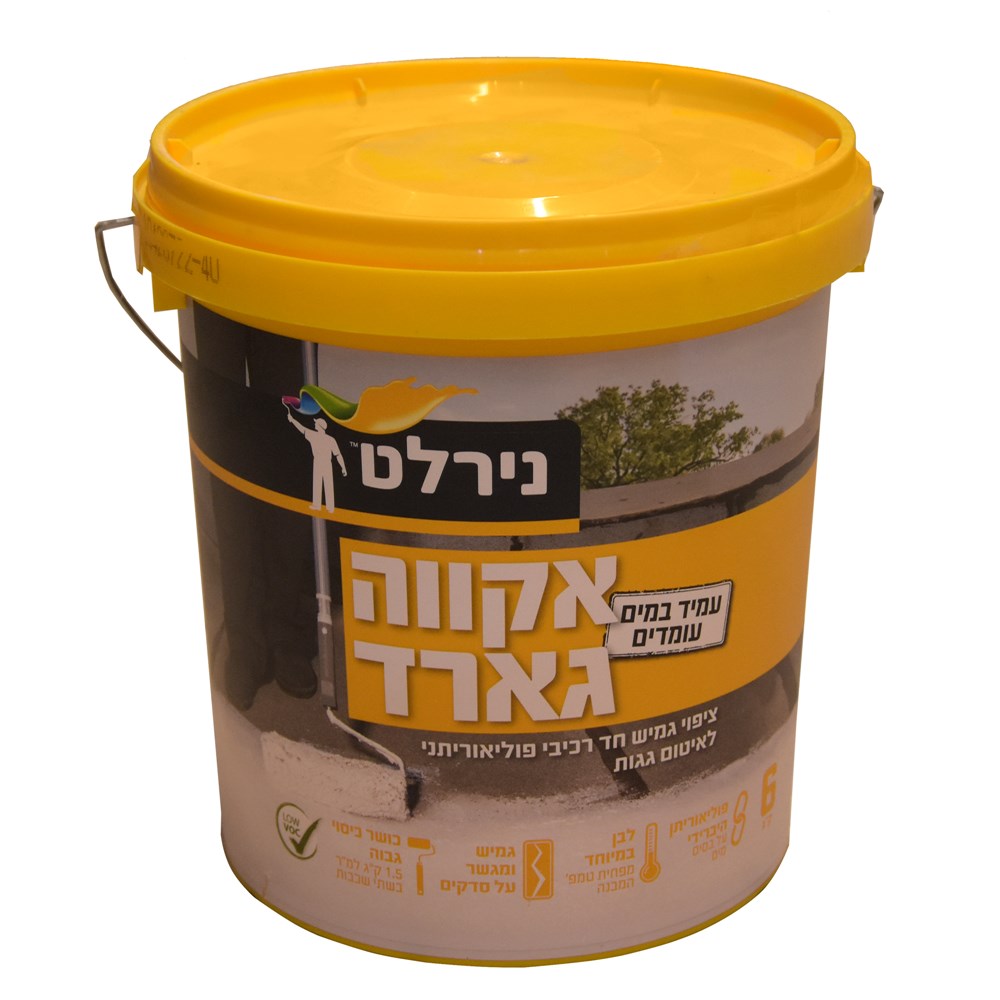 Aqua-Guard është një shtresë fleksibël poliuretani me bazë uji që parandalon depërtimin e ujit nëpër sipërfaqen e çatisë në të gjitha kushtet e motit. Përdoret për izolimin e dhomave që janë të ekspozuara ndaj lagështisë, si dhe ballkoneve (materiali nuk është i përshtatshëm për t’u aplikuar në pllaka).Aqua-Guard është shumë i qëndrueshëm ndaj çdo kushti të motit, rrezatimit UV dhe parandalon akumulimin e pluhurit dhe papastërtisë. Për shkak të elasticitetit të tij, materiali mbulon dhe parandalon shfaqjen e çarjeve në sipërfaqen e çatisë (taraces). Pas tharjes krijon shtresë të trashë poliuretani të bardhë rezistente ndaj qendrimit të ujit, duke reflektuar rrezatimin UV dhe duke parandaluar ngrohjen e ndërtesës. Përgatitja e sipërfaqes: Përgatitni çatinë (taracen) tërësisht para aplikimit. Hiqni çdo bojë të ngjitur në mënyrë të çrregullt dhe pastroni nga papastërtitë. Shpëlajeni sipërfaqen gjatë përdorimit të fshesës. Përdorni një spatul për të pastruar zona të fryra dhe të lirshme. Pas shpëlarjes, sigurohuni që i gjithë uji të thahet dhe të mos mbeten zona të mbuluara me ujë. Pasi të thahet, mbushni çarje të gjera me një mbushës akrilik (silikon). Prisni edhe 24 orë të tjera që sipërfaqja të thahet plotësisht. Aqua-Guard mund të aplikohet mbi shtresat e bitumit 30 ditë pasi të jetë aplikuar bitumi. Aplikimi: Në kohën e verës këshillohet të aplikoni herët në mëngjes para se sipërfaqja të nxehet. Aplikoni Aqua-Guard në 2 shtresa me një peshë totale prej 1.5 Kg për m². Shtresa e parë shërben si astar dhe duhet të hollohet me 30% ujë. Shtresa e dytë mund të aplikohet pa hollim. Përhapni materialin me një rul nëpër sipërfaqe, përdorni një furçë në anët dhe qoshet. Prisni të paktën 24 orë para shtresës së dytë dhe bëni aplikimin në të njëjtën mënyrë. Hollimi: holloni shtresën e parë me 30% ujë, e dyta me 5-10%. Koha e tharjes: Për ta rilyer: 24 orë. Tharje e plotë: 7 ditë