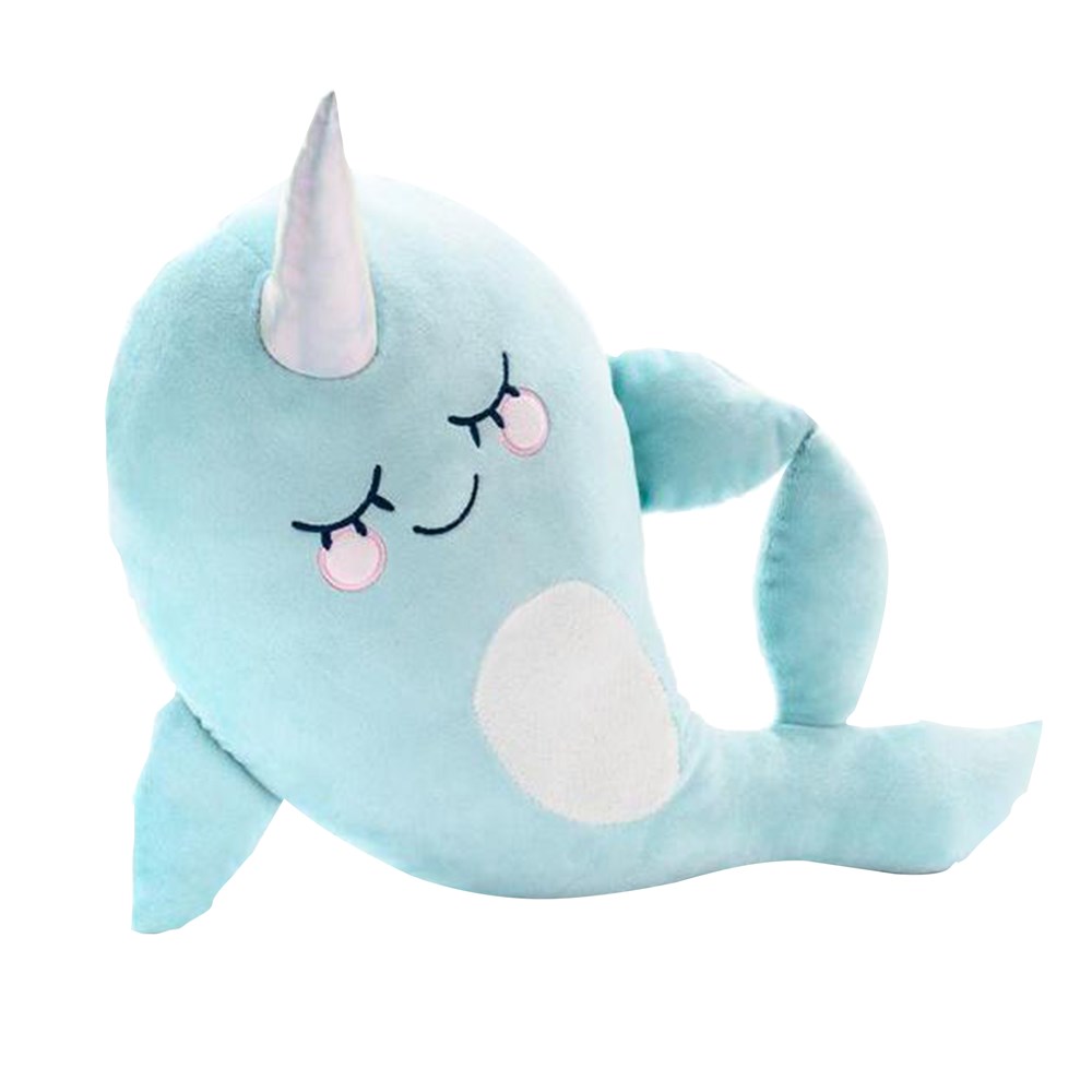 Jastëk dekorues për dhomë fëmijësh me dekor delfini, e bërë prej materiali pelushi të butë në ngjyrë kremi me detaje të qëndisura me mbushje filtri në pjesën e mbrënshme. përmasa përafërsisht 36 x 51 cm.