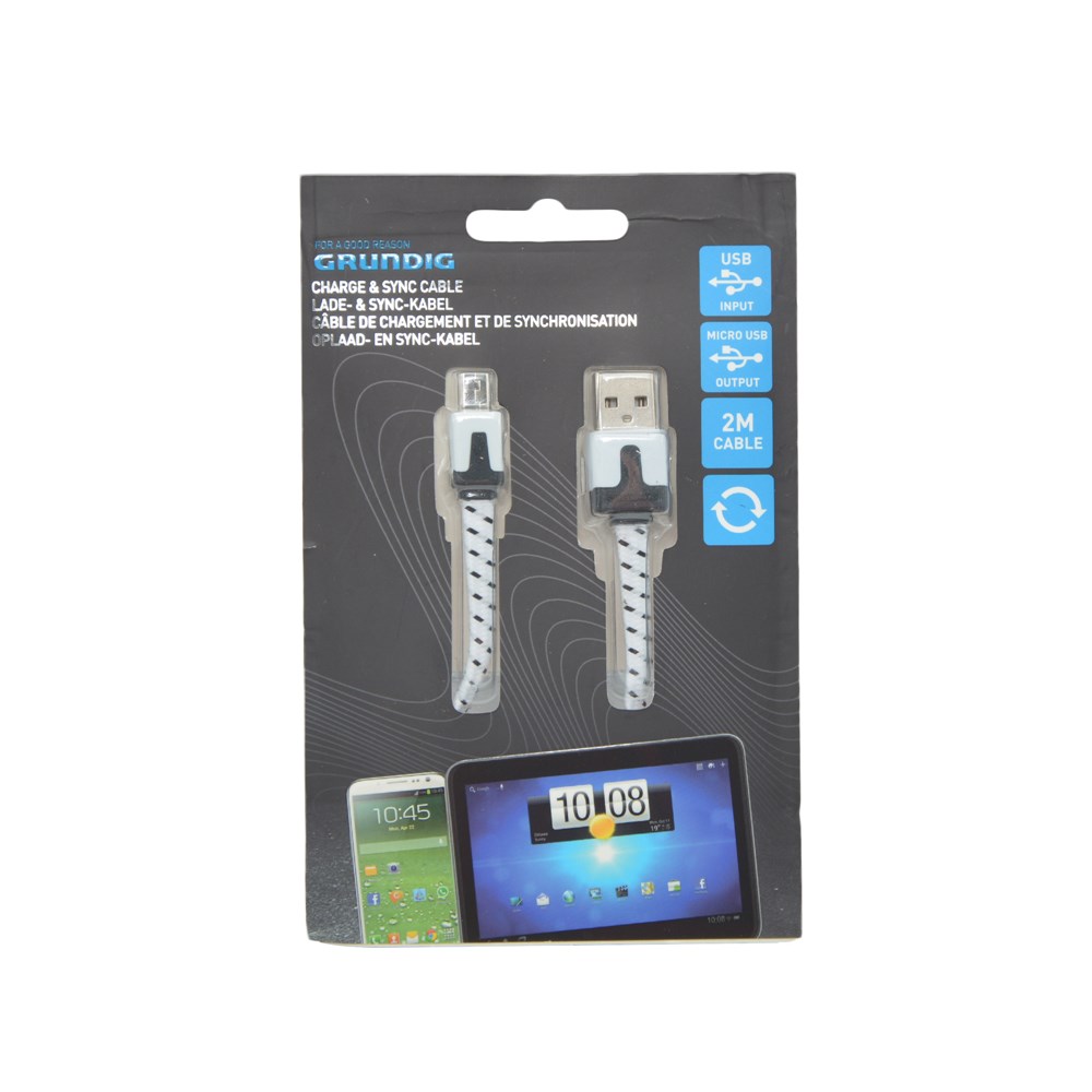 Kabëll karikimi mikro USB për android GRUNDING, 2 m, najlon, (i bardhë- i zi)
