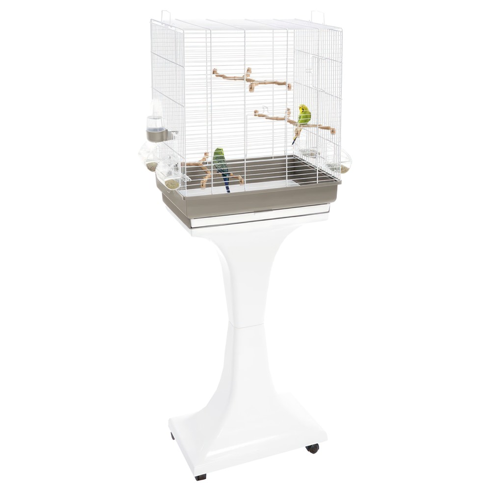Kafaz për zogj, Imac, Camilla, kafaz H50 x 30 x 57 cm, suport 129 cm, ngjyra e bardhë me gri
