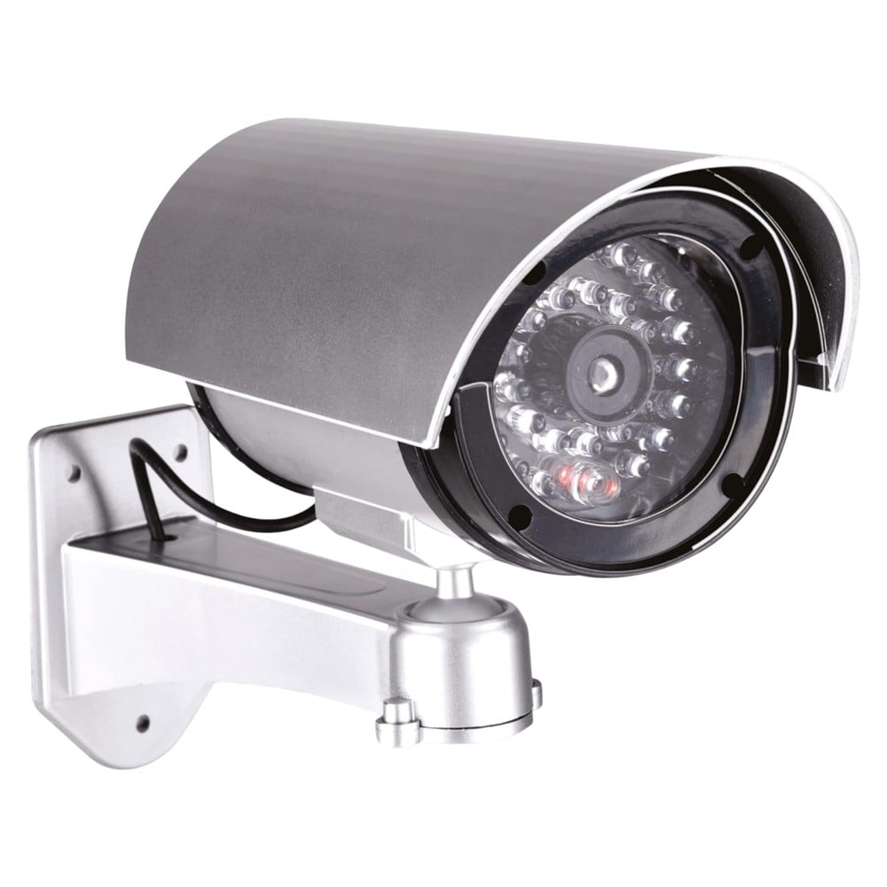 Kamera dummy sigurie me dritë LED 11 x 8 x 17 cm. Kjo kamerë realiste e rreme i pengon hajdutët nga drita LED që pulson, duke e bërë të duket sikur kamera po regjistron. Punon me bateri 2x AA, nuk përfshihen. Përfshirë materialin e montimit. Materiali: plastikë. Dimensionet (duke përfshirë stendë): afërsisht 11 x 8 x 17 cm. E përshtatshme për përdorim të brendshëm dhe të jashtëm.