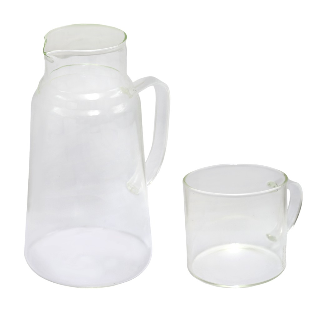 Kanë për ujë ose lëngje, i bashkangjitur me një gotë, është prodhuar nga qelqi, transparente dhe ka dimensionet Dia.7xL23 cm me një kapacitet prej 1.4 litra. Ky set ofron një zgjedhje të shkëlqyer për të shërbyer ujë, lëngje ose pijet e tjera në mënyrë tërheqëse dhe të përshtatshme. Gotë e bashkangjitur mund të shërbejë si një mënyrë elegante për të shërbyer lëngje nga kanë. Materiale i qelqit dhe transparenca e saj e bëjnë të përshtatshme për shumë raste përdorimi, duke përfshirë përdorimin e përditshëm në shtëpi, ngjarje festive ose ambiente të tjera sociale.