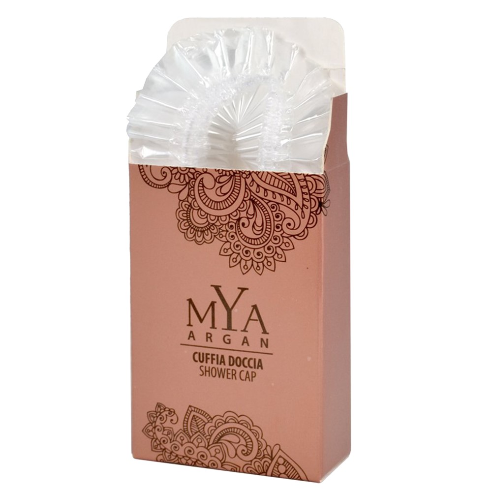 Kapuc dushi MYA Argan i përbërë nga material plastik në ngjyrë të bardhë. Praktike dhe e lehtë për t'u përdorur për të mos lagur flokët tuaj gjatë dushit. Paketimi përmban 50 copë.