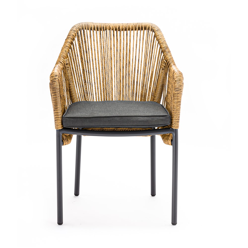Karrige me krahë Heliks,strukture alumini/thurje PE, kafe, 56x66xH82 cm