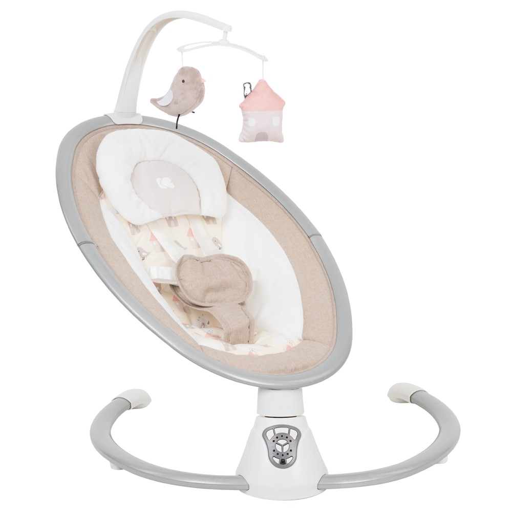 Karrige relaksi elektrike për bebe, prej materiali alumin i bazamentit dhe tekstil jo alergjik për fëmijët. Karrigia përbëhet nga 5 nivele lëkundje, 12 melodi të qeta dhe 5 tinguj të natyrës, me volum të rregullueshëm. Ka një kohëmatës që mund të vendoset në 3 intervale të ndryshme kohore (15, 30 ose 60 minuta), në mënyrë që fëmija juaj të mund të shijojë një gjumë të mirë dhe më pas të fiket automatikisht. Ka rrip sigurues me 5 pika, dhe është e përshtatshme për fëmijë me peshë maksimale deri në 9 kg.