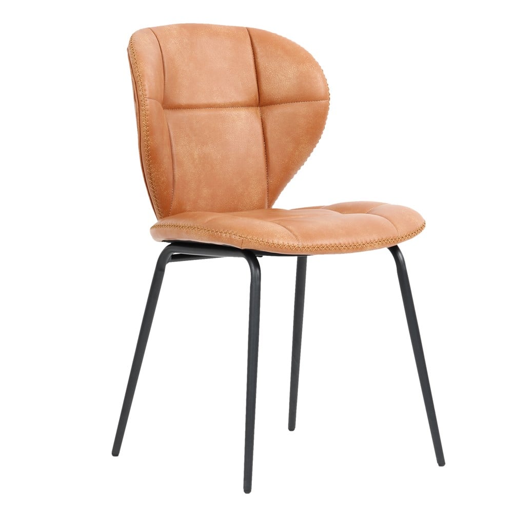 Karrige, strukturë metali (zezë), tapiceri PU dhe sfungjer dhe kompensatë, kafe, 50x44xH82 cm