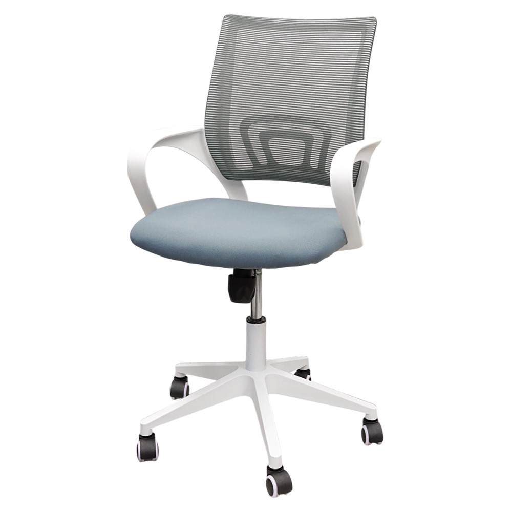 Karrige zyre, Kite, mbështetëse rrjetëzuar, ulëse veshje tekstili, bazament metalik, rrota najloni, gri e errët/e bardhë, 57x60xH87- 99 cm