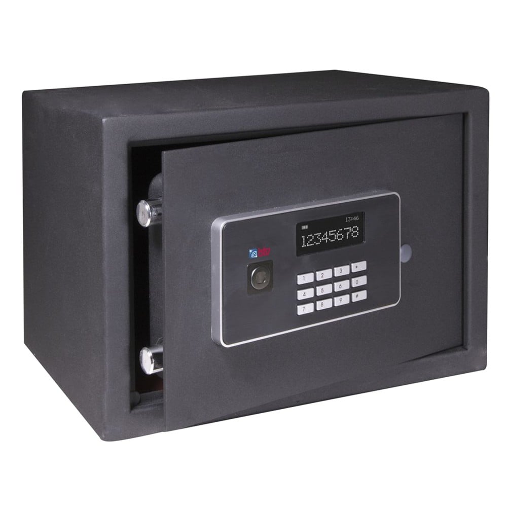 Kasaforta VISION-30 BTV per shtepi edhe zyra, e sigurt dhe elegante , me trashesi dere 4mm dhe trashesia ne trupin e kasafortes 1.5mm. Ndricimi I brendeshem automatik me hapjen e deres se kasafortes. Ngjyra e zeze , permasat 300 x 380 x 300mm , menyra e hapjes me celes plus celes emergjence dhe elektronike , nje kod emergjence 8-shifror. pesha e kasafortes 11 kg dhe kapaciteti i brendeshem 26 Lt.