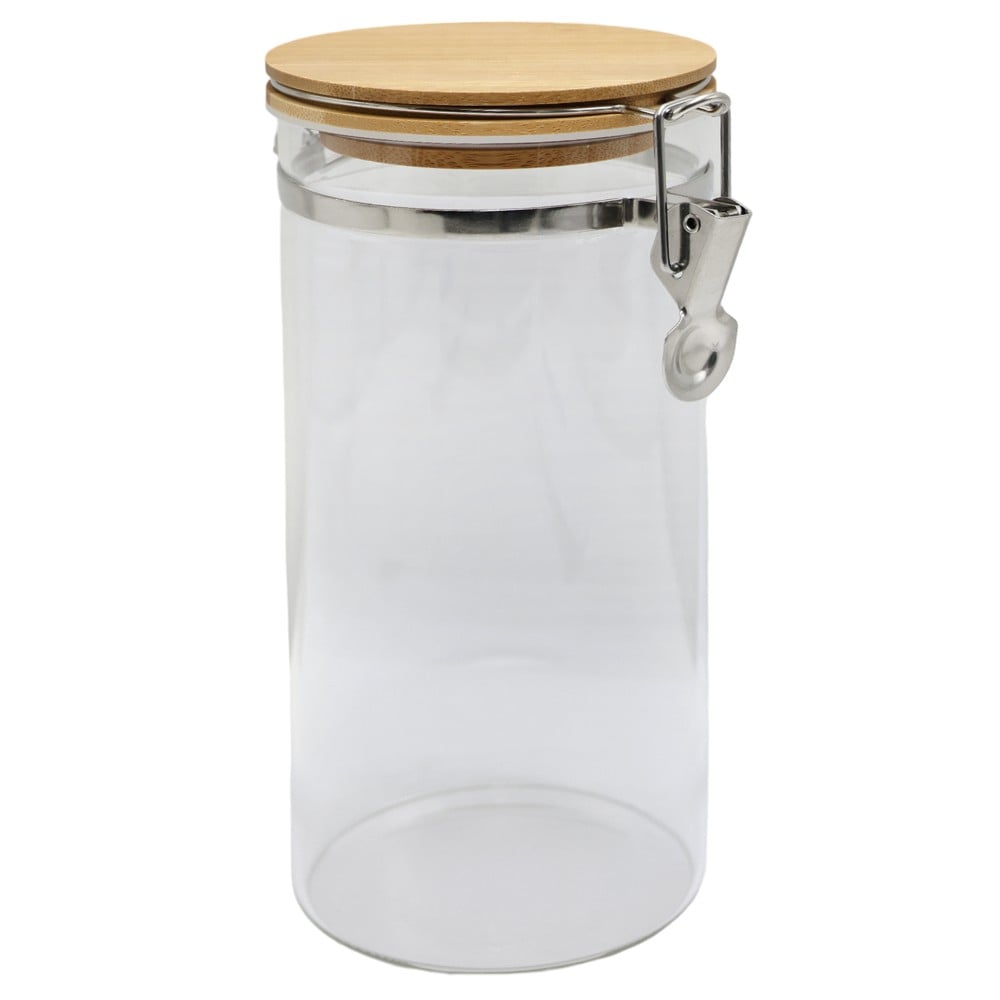 Kavanoz hermetik me kapak bambu, qelq/bambu, transparente, H18.5 cm / 1.2 Lt