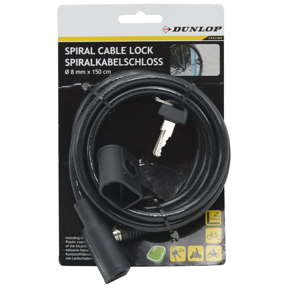 Po vlerësoni:Kavo lidhëse spirale për biçikletë me çelës DUNLOP, 150 cm, 8 mm, (e zezë)