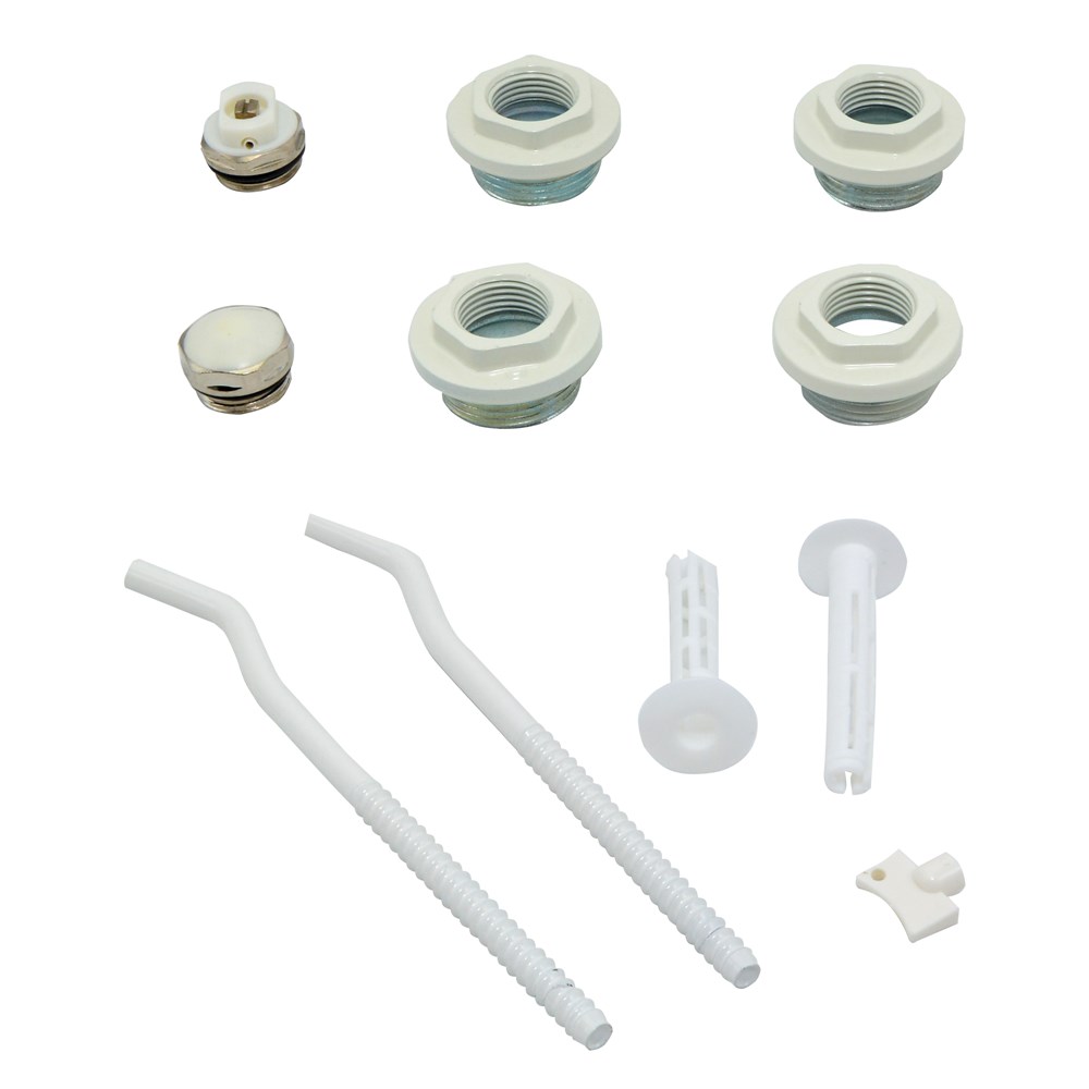 Kit montimi për radiator alumini. Janë një paktim i shkëlqyer për mbylljen e procesit të punimeve për montimin e radiatorëve të alumint falë aksesorëve të përfshirë në paketim.